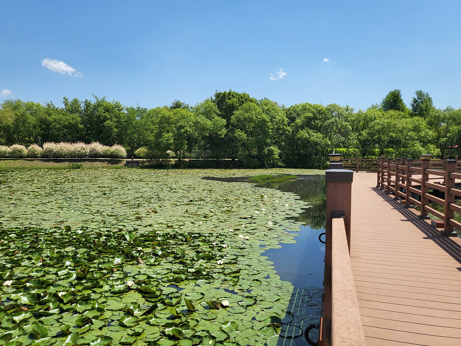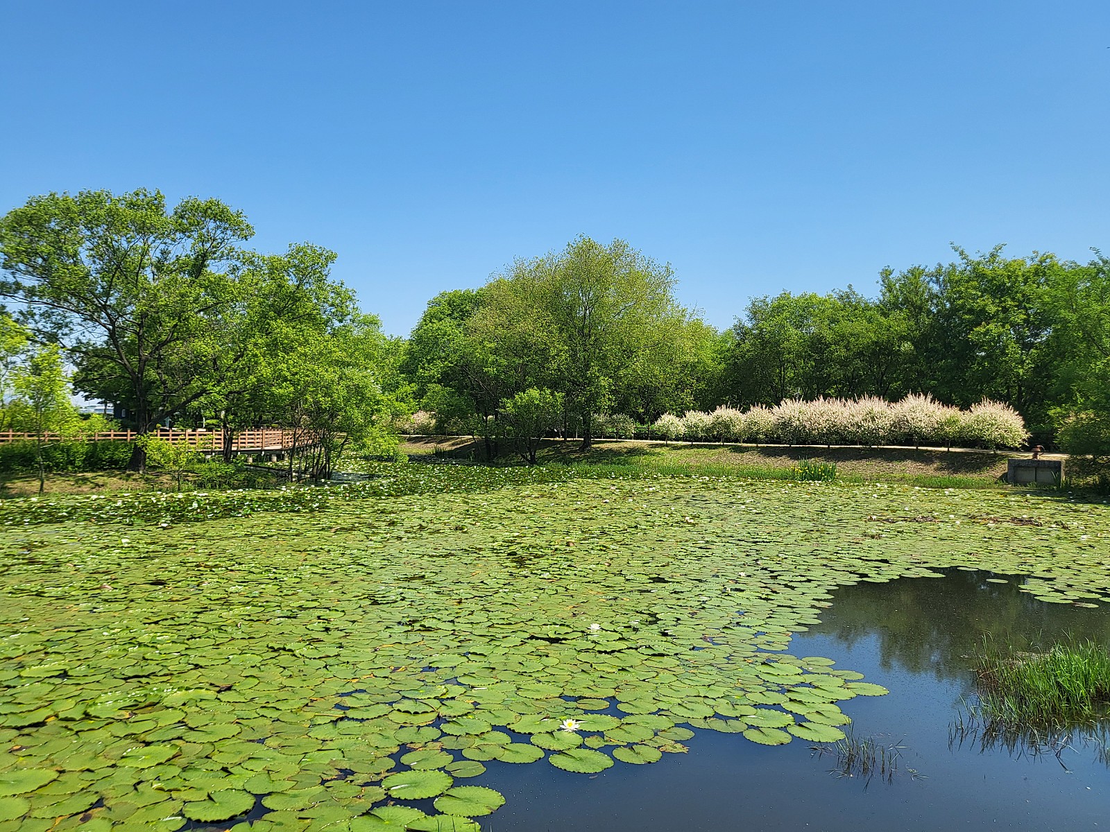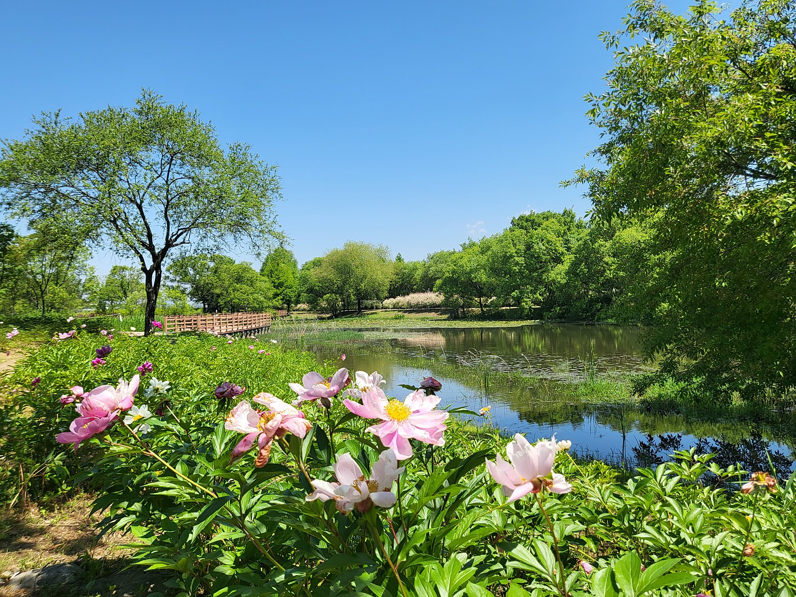 소풍길을 걷다 보면 팔각정과 연꽃원을 만날 수 있습니다. 팔각정 앞으로 아름다운 작약 꽃밭이 조성되어 향긋한 꽃향기를 따라 산책을 즐길 수 있습니다. 하지만 아직 다 피지 못한 꽃봉오리가 많이 보이기도 합니다. 5월 중순이 지나서는 작약이 만개하여 더욱 아름다운 풍경을 감상할 수 있습니다.