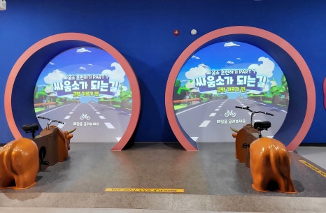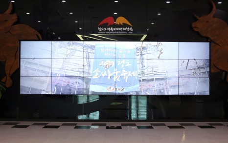 미디어아트를 통해 청도 소싸움을 볼 수 있어요.