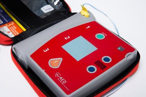 ♠ 기기를 심폐소생술에 방해가 되지 않는 위치에 놓은 뒤에 전원 버튼 누름