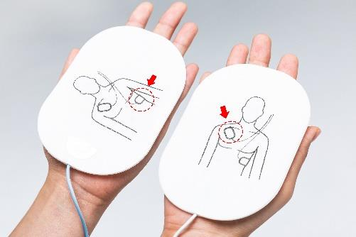 ♠ 패드1은 오른쪽 쇄골 바로 아래에, 패드2는 왼쪽 옆구리에 부착