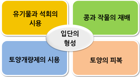 - 입단을 형성하려면 유기물과 석회ㆍ토양개량제를 시용하고, 콩과작물을 재배, 토양을 피복한다.
