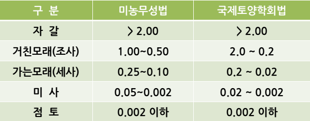 * 토양 입자의 크기에 따른 구분