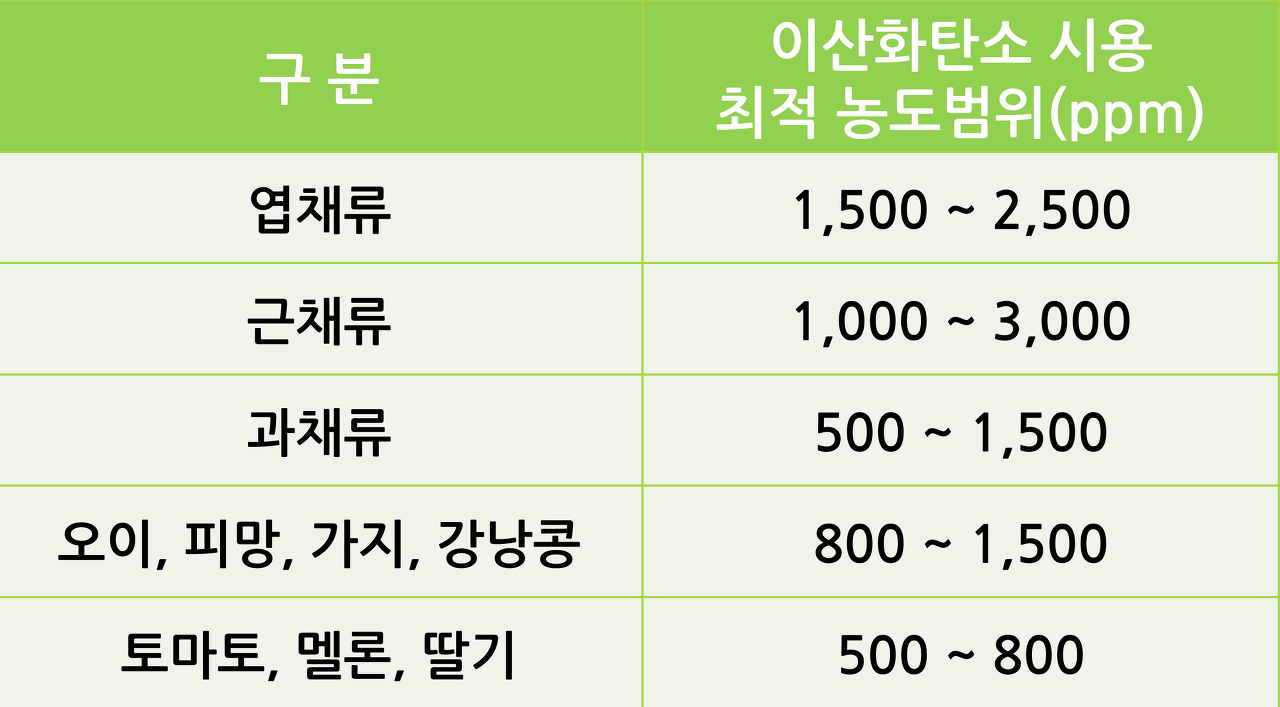 • 작물환경으로서 이산화탄소 농도를 인위적으로 높여주는 것