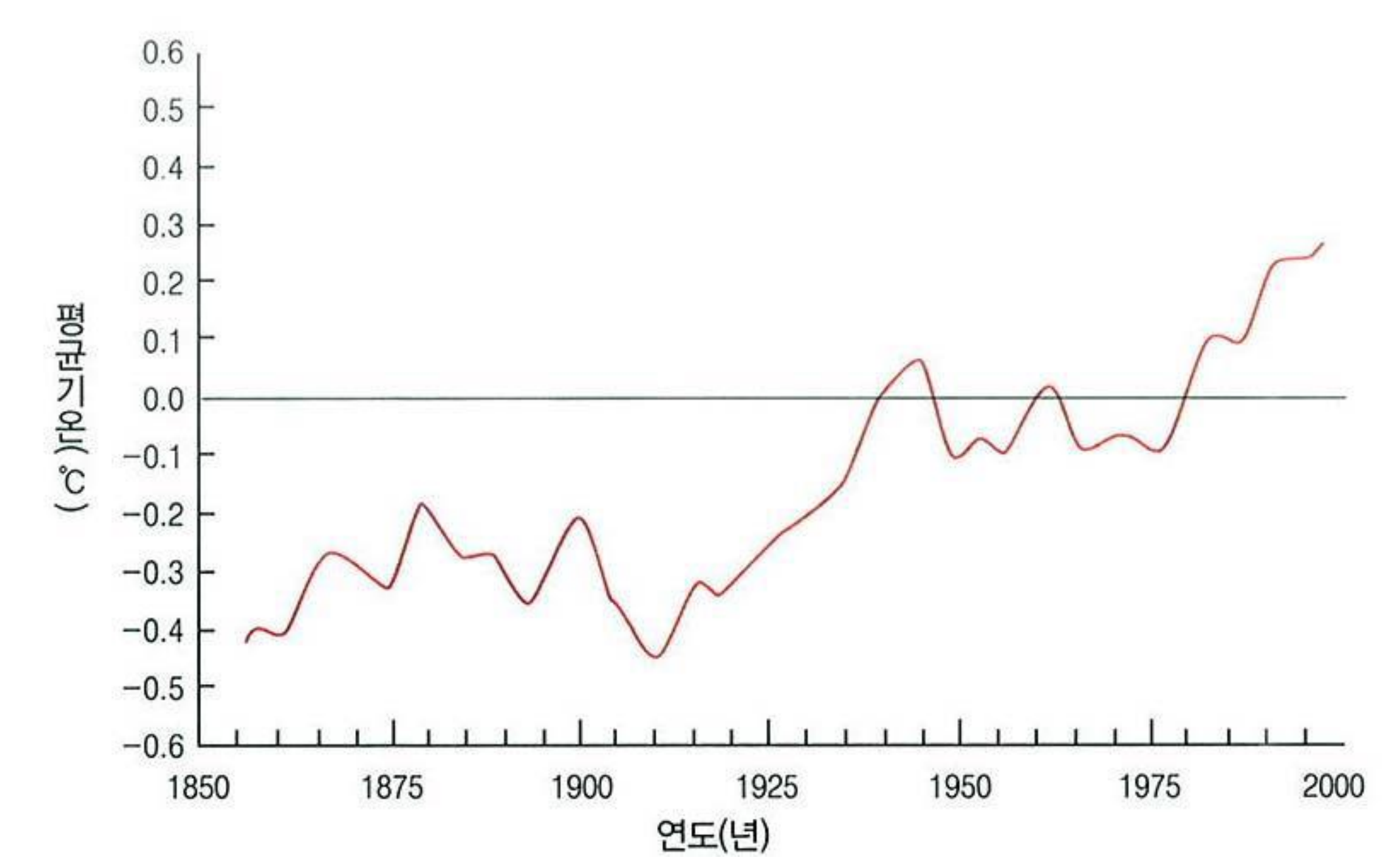 * 제로(0.0)선은 1961~1990년 까지의 지표면의 평균 온도이다.